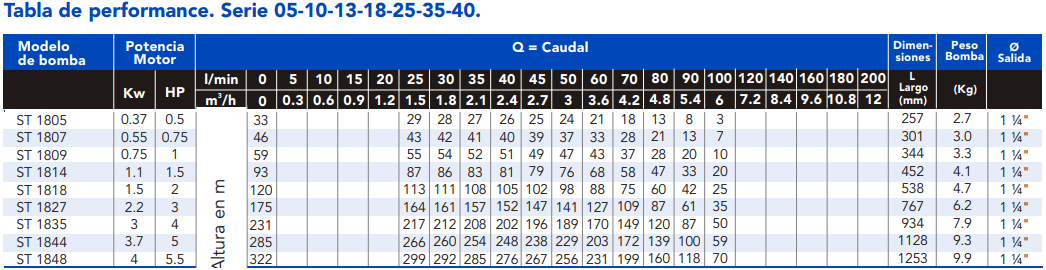 - Cuerpo de bomba fabricado en acero inoxidable de 1,5