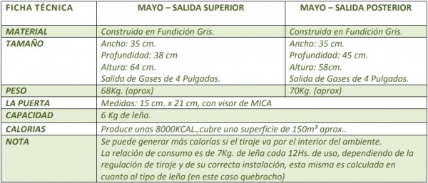 La relacion de consumo es de 9 kg de leña cada 12 hs de uso , dependiendo de la regulacion del tiraje y de su correcta instalacion , esta misma es calculada en cuanto al tipo de leña (en este caso quebracho) .
